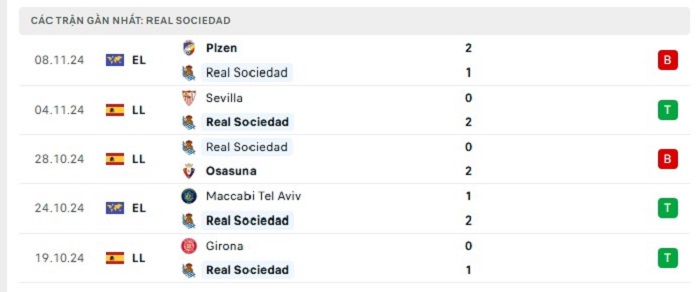 Bảng  bóng đá trận đấu Real Sociedad vs Barcelona