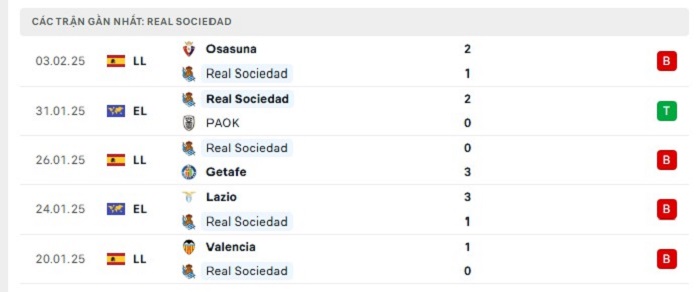 • Phong độ Real Sociedad