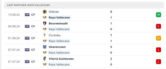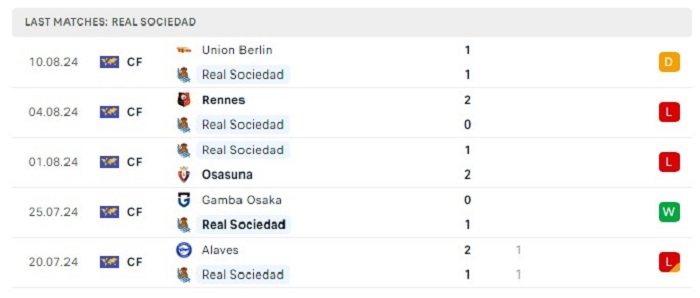 Phong độ gần đây Real Sociedad vs Rayo Vallecano