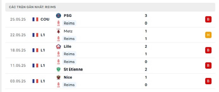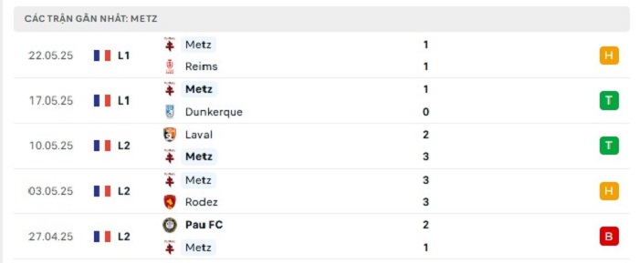 Phong độ gần đây Reims vs Metz