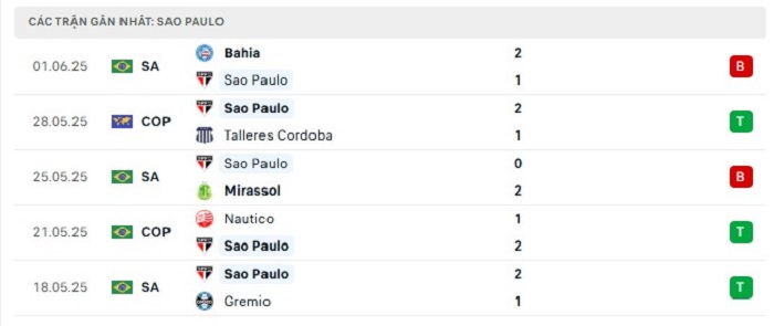 • Phong độ Sao Paulo