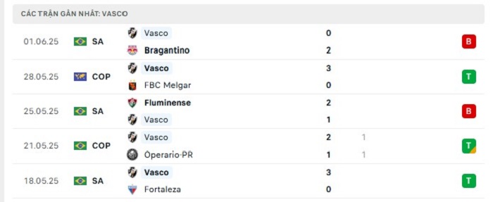 • Phong độ Vasco Gama