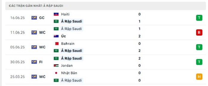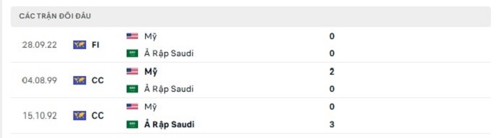 Phong độ gần đây Saudi Arabia vs Mỹ