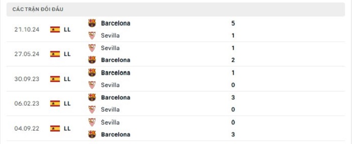 Bảng bóng đá trận đấu Sevilla vs Barcelona