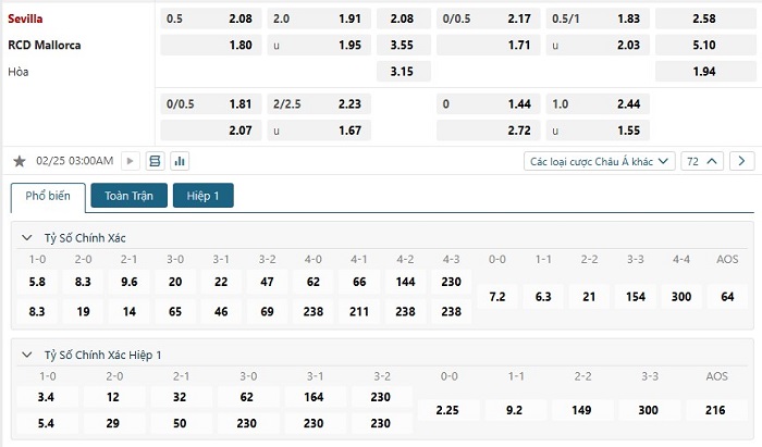 Soi kèo tỷ số Sevilla vs Mallorca