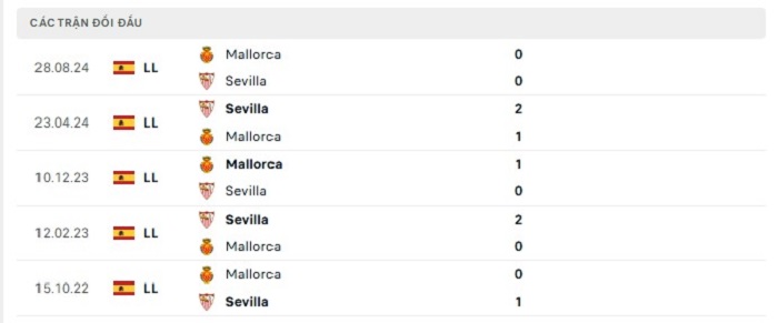 Lịch sử đối đầu của Sevilla vs Mallorca