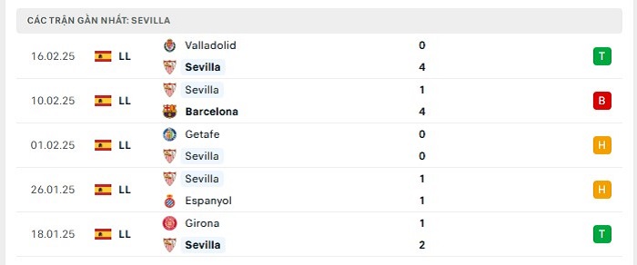 • Phong độ Sevilla