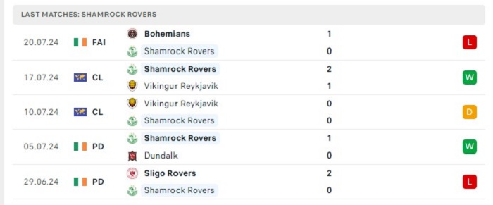 Phong độ gần đây Shamrock Rovers vs Sparta Praha