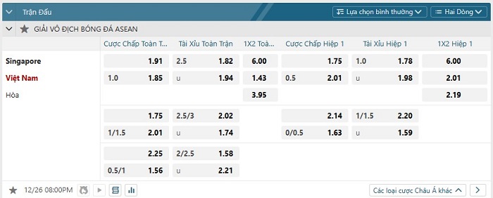 Soi kèo châu Á, kèo chấp Singapore vs Việt Nam