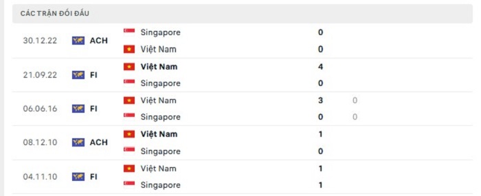Lịch sử đối đầu của Singapore vs Việt Nam