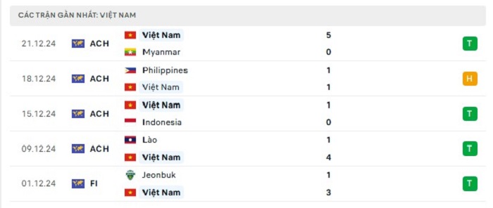 Phong độ gần đây Singapore vs Việt Nam