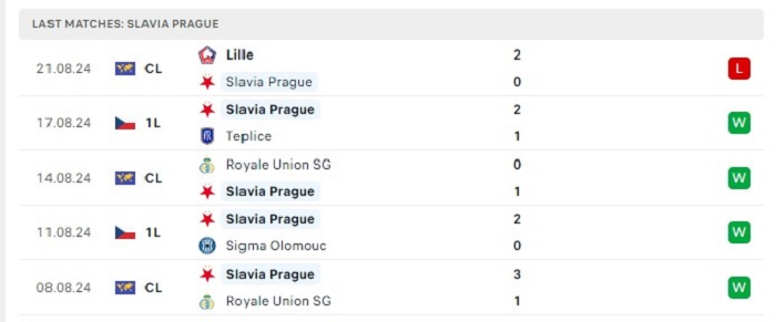 - Phong độ Slavia Praha
