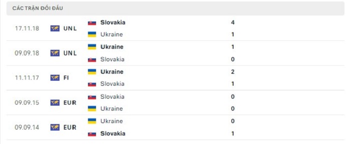 Phong độ gần đây Slovakia vs Ukraine