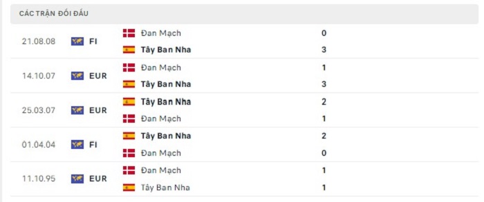 Bảng  bóng đá trận đấu Tây Ban Nha vs Đan Mạch