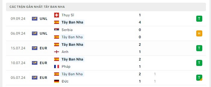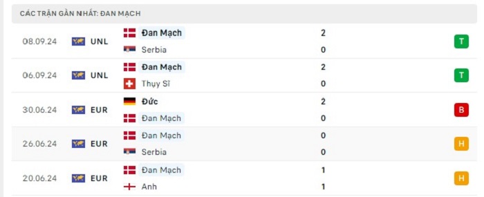 Phong độ gần đây Tây Ban Nha vs Đan Mạch
