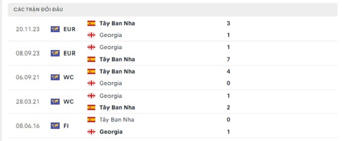 Lịch sử đối đầu của Tây Ban Nha vs Georgia