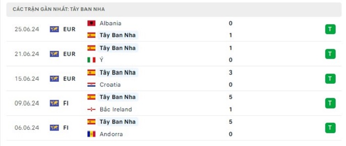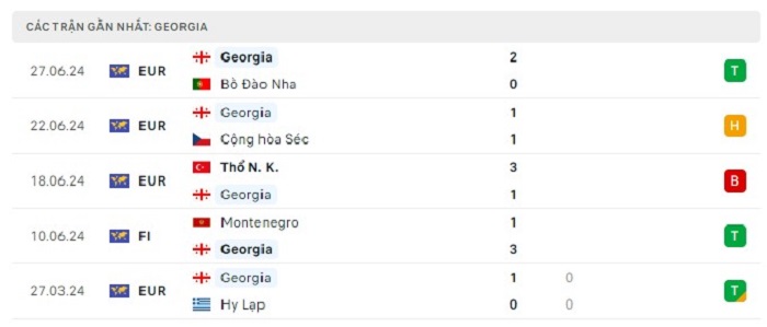 Phong độ gần đây Tây Ban Nha vs Georgia