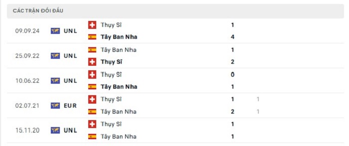 Trong quá khứ Tây Ban Nha cũng có được không ít thành công trước Thụy Sĩ, tuy vậy họ cũng không thể xem nhẹ đối thủ này bởi cũng chỉ thắng 3 trong 8 lần gặp nhau trước đây, có thể thấy được Thụy Sĩ cũng đã tạo ra không ít khó khăn cho Tây Ban Nha với 3 trận hai đội có thành tích bất phân thắng bại trong thời gian thi đấu chính thức của trận, do đó mà khả năng hoà kèo châu Âu của hai đội ở trận gặp nhau sắp tới cũng vì vậy mà khả thi hơn.
