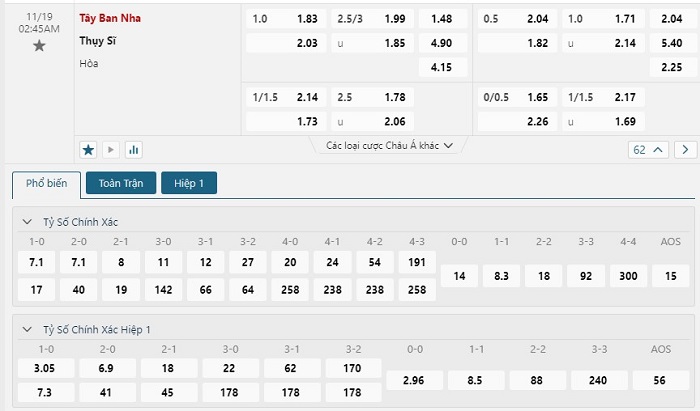 Soi kèo châu Á, kèo chấp Tây Ban Nha vs Thụy Sĩ