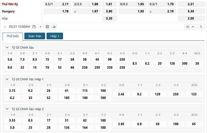 Soi kèo tỷ số Thổ Nhĩ Kỳ vs Hungary