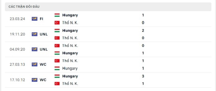 Thành tích trong quá khứ với Thổ Nhĩ Kỳ họ cũng có những mặt bất lợi trước Hungary nhiều năm qua, điều này có thể thấy được khi họ chỉ thắng 2, hoà 1 và thua tới 4 trận đấu theo mốc kèo châu Âu cả trận. Tuy vậy trên sân nhà thì Thổ Nhĩ Kỳ thể hiện được phong độ tốt cho mình ở sân chơi Nations League mùa này với cả 3 vòng đấu đang bất bại đến thời điểm này, chính bởi vậy mà với những lợi thế về mặt sân nhà đang có được hiện nay với họ sẽ là cơ hội để thu về một thắng lợi theo kèo châu Âu cả trận.
