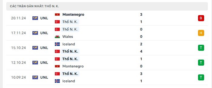 Phong độ gần đây Thổ Nhĩ Kỳ vs Hungary