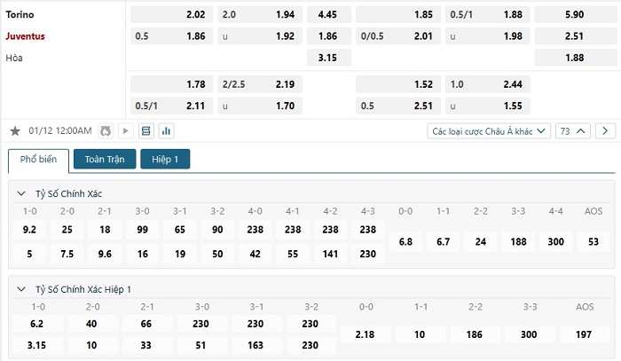 Soi kèo châu Á, kèo chấp Torino vs Juventus