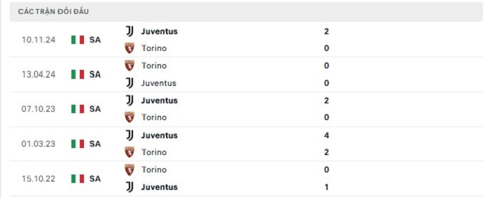 Bảng bóng đá trận đấu Torino vs Juventus