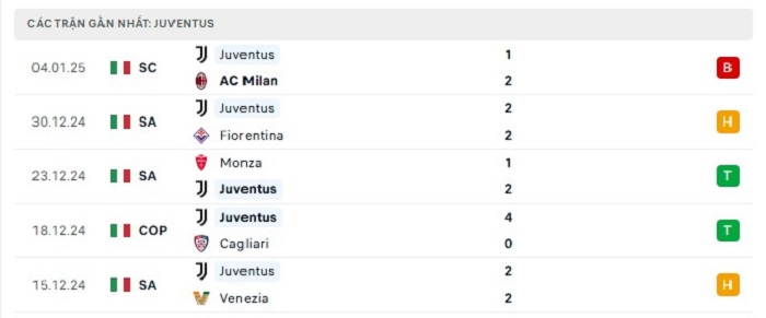 Phong độ gần đây Torino vs Juventus