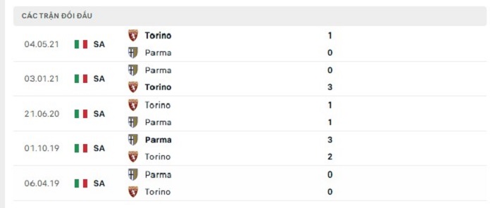 Thống kê có thể thấy được giữa Torino và Parma trong quá khứ tỷ lệ ghi bàn ở các trận đấu của họ không cao, cụ thể là 4 trong 5 lần gặp nhau gần đây trên sân nhà của Torino chỉ có được từ 2 bàn thắng ghi được trở xuống. Mùa này hàng công của hai đội ở sân chơi Serie A này cũng không thể hiện được hiệu suất ghi bàn tốt cho mình qua từng trận đấu, chính vì vậy mà khó có thể kỳ vọng tới một trận đấu bùng nổ về mặt tỷ số của cả hai đội.