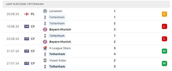 - Phong độ Tottenham Hotspur