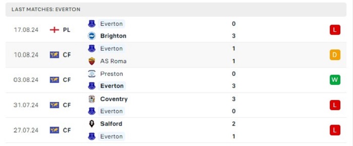 - Phong độ Everton