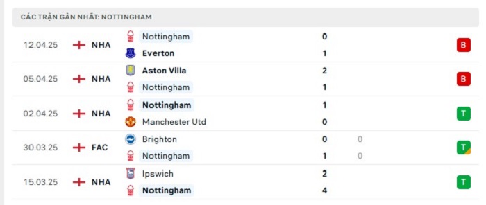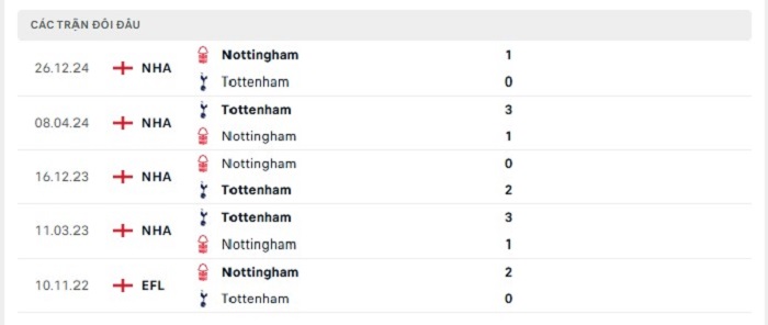 Phong độ gần đây Tottenham Hotspur vs Nottingham
