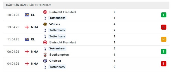 - Phong độ Tottenham Hotspur