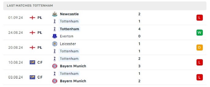 - Phong độ Tottenham