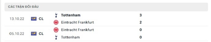 Thành tích trong quá khứ có thể thấy được Tottenham cũng đã đánh dấu những thành công của mình trước Eintracht Frankfurt, bằng chứng là 2 lần gặp nhau của hai đội trước đây thì Tottenham thắng 1 và hoà 1 trước đại diện Bundesliga theo mốc kèo châu Âu được niêm yết. Phong độ trên sân nhà của Tottenham gần đây cũng có những khởi sắc ấn tượng hơn với 2 trận toàn thắng theo kèo châu Âu gần nhất, chính vì vậy mà với những lợi thế có được việc Tottenham có một thắng lợi cũng không phải quá bất ngờ.
