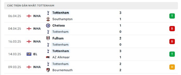 - Phong độ Tottenham