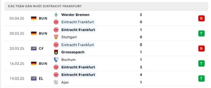 - Phong độ Eintracht Frankfurt
