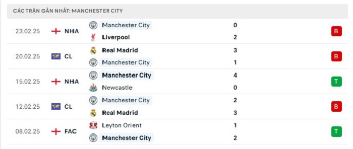 Bảng  bóng đá trận đấu Tottenham vs Manchester City