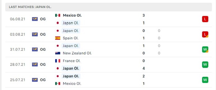 Phong độ gần đây U23 Nhật Bản vs U23 Paraguay