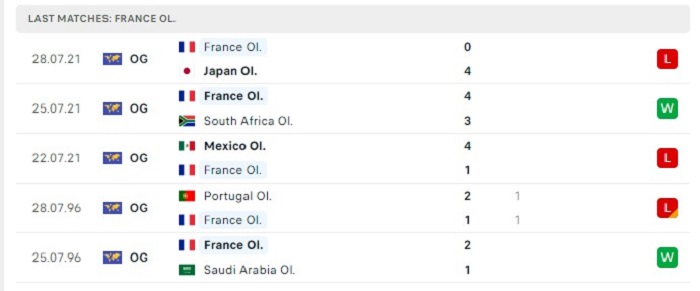Phong độ gần đây U23 Pháp vs U23 Mỹ