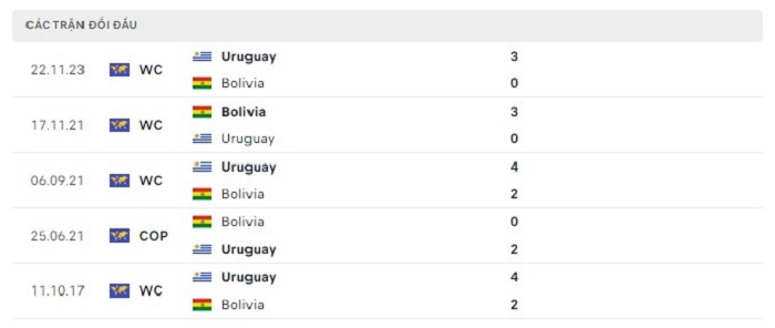 Phong độ gần đây Uruguay vs Bolivia
