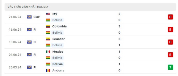 - Phong độ Bolivia