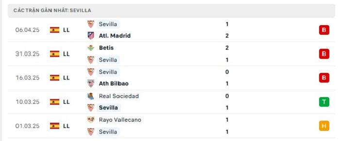 • Phong độ Sevilla