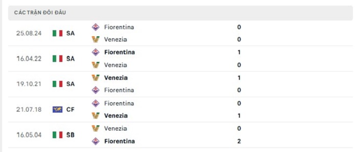 Thống kê có thể thấy được những lần gặp nhau giữa Venezia và Fiorentina trước đây cũng không có sự chênh lệch với nhau, thật vậy khi mà tổng cộng 6 lần gặp nhau trước đây của hai đội thì mỗi bên đã có được cho mình 2 trận thắng kèo châu Âu và 2 trận hoà. Trên sân nhà của mình ở mùa giải thì Venezia cũng có tới 4 trận thắng và 5 trận hoà theo kèo châu Âu cho thấy được những lợi thế đáng kể của họ trước đối thủ, bởi vậy mà khả năng bất phần thắng bại ở lần gặp nhau sắp tới cũng là điều khả quan với họ.
