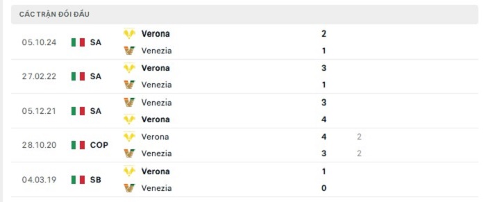 Venezia vốn cho thấy được những khó khăn của mình trước Hellas Verona trong nhiều năm qua, bằng chứng cụ thể nhất là cả 3 lần gặp nhau gần đây dù trên sân nhà hay sân khách thì Hellas Verona là đội có được thành tích toàn thắng theo kèo châu Âu được niêm yết. Mùa này phong độ của Venezia vẫn đang cho thấy những mặt yếu kém thực sự của mình tại Serie A thì đây sẽ là cơ hội để cho Hellas Verona tiếp tục nâng cao thành tích của mình trước đối thủ này.
