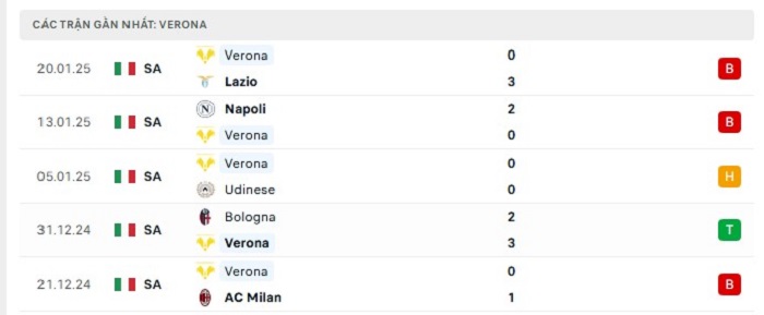 - Phong độ Hellas Verona