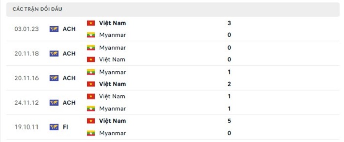 Quá khứ vẫn đang đứng về phía Việt Nam trong những lần gặp Myanmar nhiều năm qua, cụ thể ở 8 lần gặp nhau gần nhất giữa hai đội thì “những chiến binh sao vàng” thu về được 5 trận thắng kèo châu Âu trong khi chỉ hoà 2 và thua 1 trước Myanmar. Sân chơi AFF Cup năm nay với Việt Nam họ cũng là ứng cử viên hàng đầu cho chức vô địch giải đấu chính bởi vậy mà trước Myanmar không quá mạnh là thời điểm để Việt Nam tiếp tục phát huy được khả năng và sức mạnh của mình.