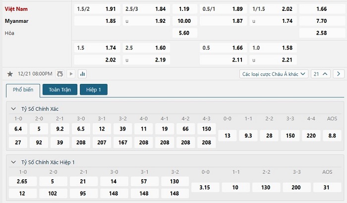 Soi kèo tỷ số Việt Nam vs Myanmar
