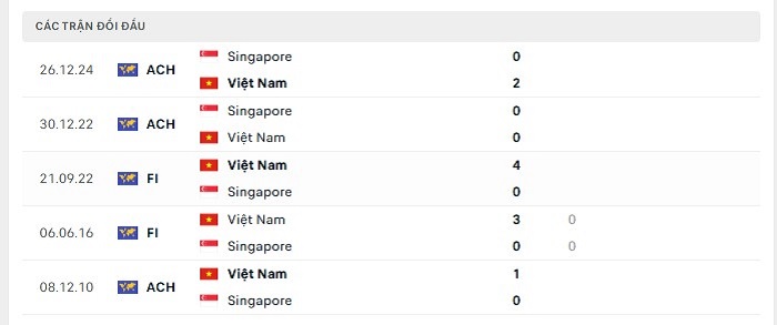 Lịch sử đối đầu của Việt Nam vs Singapore